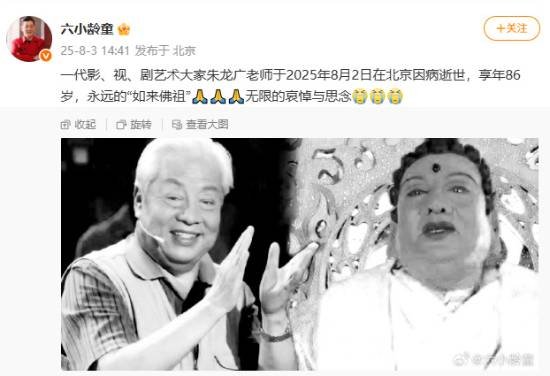 六小龄童发文悼念,称朱龙广为“一代影、视、剧艺术大家”,并表达无限哀思。朱龙广的离世让无数观众怀念他塑造的经典角色,尤其是“如来佛祖”形象深入人心。