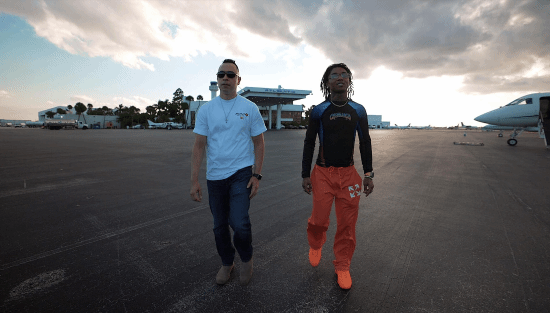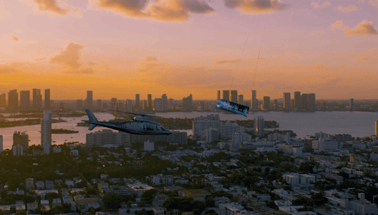 两架直升机协同作战,一架吊载面积超过200平方英尺的巨型屏幕,另一架搭载Team Ninja社区经理与歌手Swae Lee,在飞行中实时演示游戏操作,成功创下“由直升机吊载的最大电子游戏显示屏”吉尼斯世界纪录。
