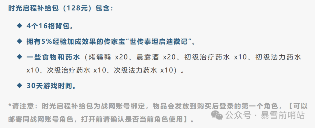 启程礼包包含16格背包和经验加成传家宝,5%经验提升有助于练级,适合追求效率的玩家选择性购买。