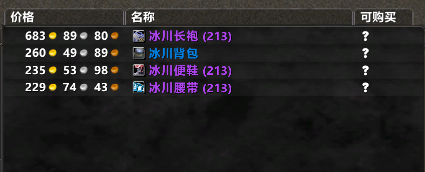 冰抗装备价格也开始上涨,H冰龙开荒必备。建议准备冰抗腰带、鞋子、戒指及披风附魔,搭配抗性合剂提升生存能力。