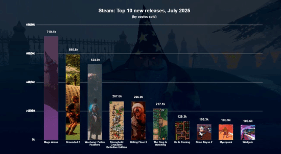 销量榜单显示,《Mage Arena》以71.91万份夺冠,《禁闭求生2》《明末:渊虚之羽》分列二、三名,展现多元市场格局。