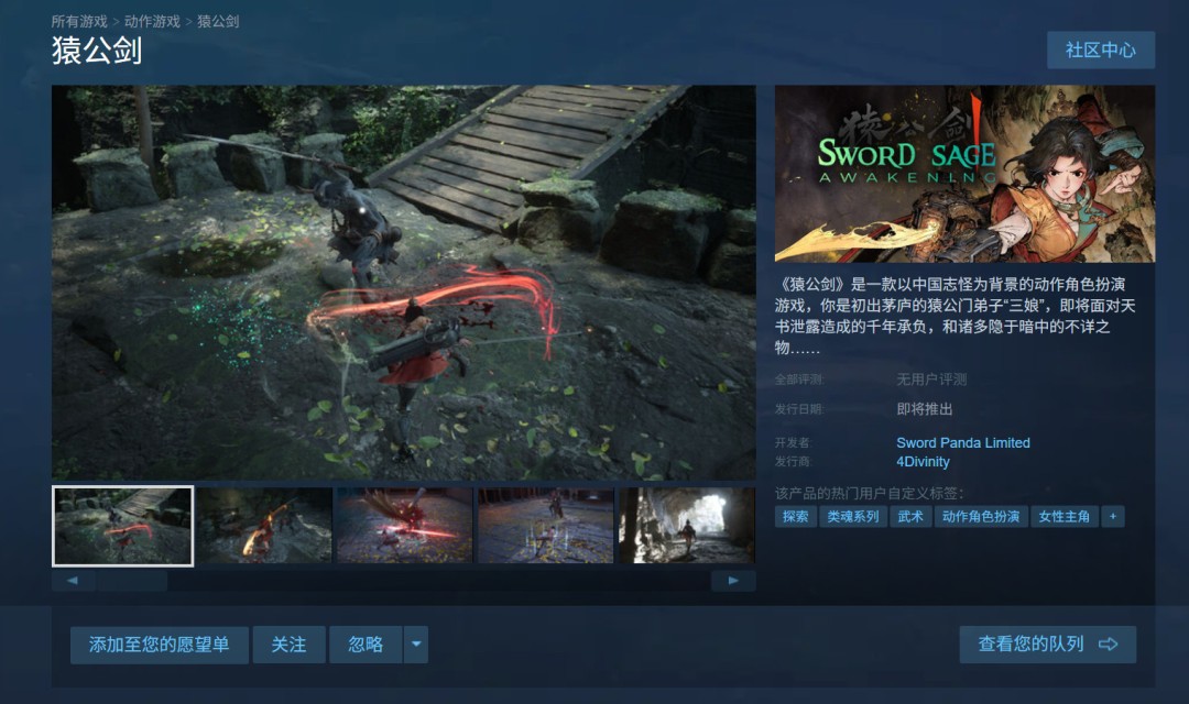 《猿公剑》凭借独特的文化内核与硬核动作玩法,有望成为国产单机游戏的新标杆。感兴趣的玩家可前往Steam关注并添加愿望单,获取最新动态。
