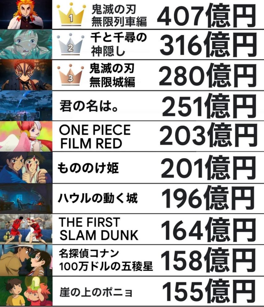《鬼灭之刃 无限城篇》票房狂飙,上映仅38天便突破280亿日元,强势登顶日本影史第三,仅次于《千与千寻》与前作《无限列车篇》。影片热度引爆粉丝对“九柱实力排名”的热议。