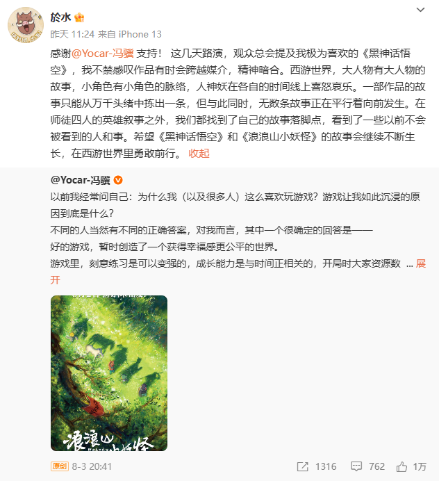 导演於水回应称,两部作品虽媒介不同但精神相通,均聚焦西游世界中“小角色”的故事。他期待《浪浪山小妖怪》与《黑神话:悟空》共同丰富西游IP,让更多边缘叙事被看见。