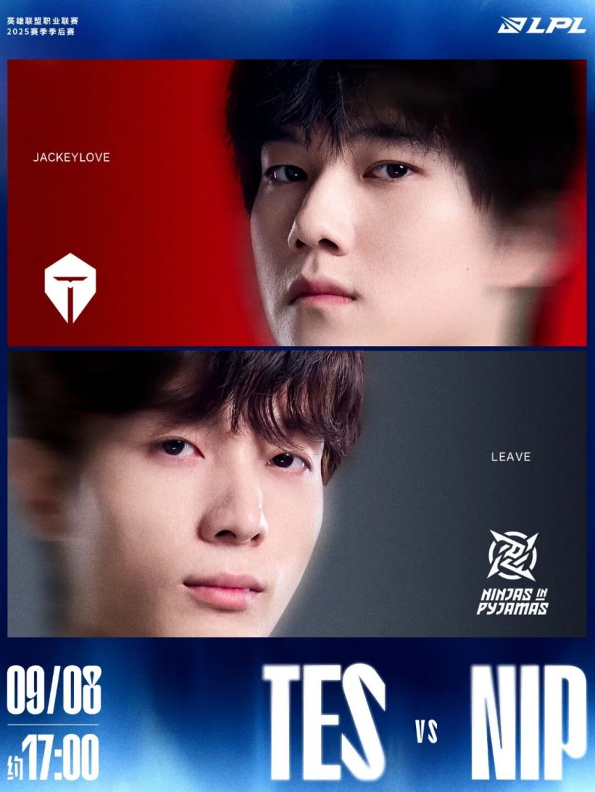 2025LPL季后赛第二日激战开启!AL与WBG率先于14:00展开BO5对决,胜者将锁定胜者组席位;约17:00 TES迎战NIP,争夺关键晋级机会。官方解说由记得、王淞、王多多、鼓担纲,余霜、刘航主持,周敢敢、阿芙负责互动环节。