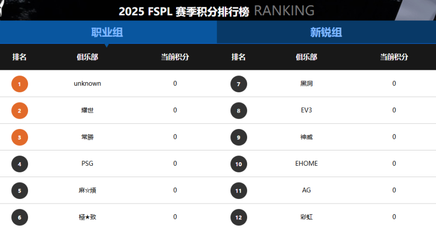 本届联赛共有12支职业俱乐部参赛,包括UNKNOWN、耀世等10支老牌战队,以及新加盟的常勝与EV3俱乐部,他们将展开为期8周的常规赛角逐。