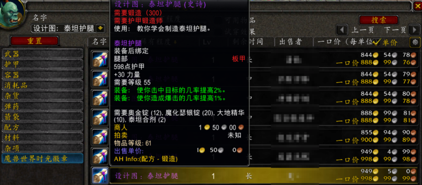 《魔兽世界》60级周年服近期开放P5阶段,新增世界掉落泰坦护腿图纸引发玩家热议。作为经典怀旧服顶级制造装备,该图纸曾创下天价交易纪录——5年前首张成交价高达12万金币,如今铁血1服价格暴跌至888G,折射出当前版本装备市场的显著变化。