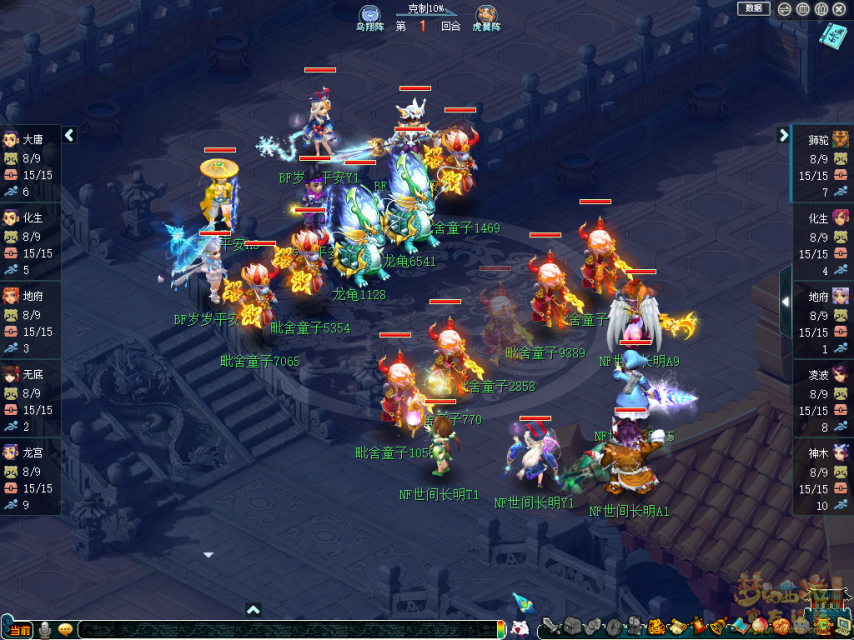 第二局【世间长明】祭出三攻阵容,开场速攻力普陀打乱对手节奏,狮驼+凌波+魔王的面伤压制令【岁岁平安】难以招架,第11回合完成清场扳平比分。