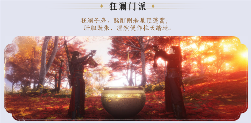 玩法方面重磅推出「家业系统」,玩家可重建不羡仙客栈并兑换【棠棣映夏】套装。开封终章开放侠迹【公子书】新剧情,完成挑战可获得彩蛋钥匙及配饰【叩清风】。新门派「狂澜」支持三种入门方式,晋升体系包含独特饮酒玩法。